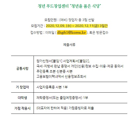 청년푸드창업센터지원자모집