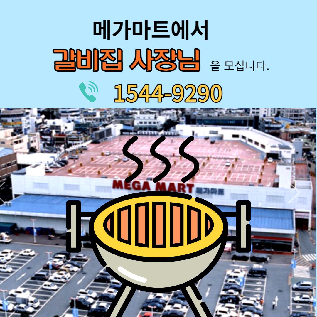 다양한 부위별 구이로 덕트 시공이 다 될것이며 위치는 메가마트 1층에 입점 될 예상입니다.