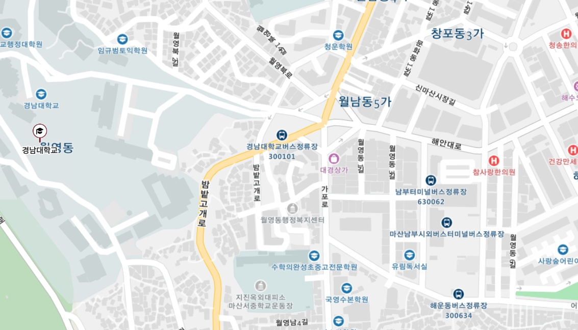 경남 창원시 합포구에 위치한 경남대학교 댓거리
