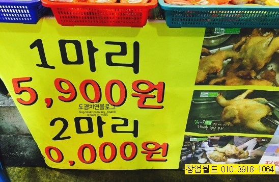 시장내에 있는 저가형 치킨 옛날통닭 브랜드 양도양수 1마리 5900원 2마리 10000원 옛날 통닭은 1인 1닭이 가능 1마리보단 2마리가 더 저렴