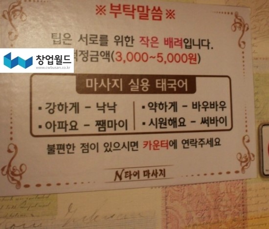 -------------------------------------------------------------------- ☞ 24시간 운영 ☞ 사장님이 대구가 집이신데 울산까지 왔다 갔다 하기가 힘들어서 급매로 내놓으심 ☞ 터미널하고도 가까우니 쉬고 가기 딱 좋은곳 옆 사우나보다 더 장사 잘됨 ☞ 룸 18개 욕실 샤워실 방안에 다 있음 (1.2.3인실) ☞ 마사지관리사는 태국분만 쓰심 (5~6명)